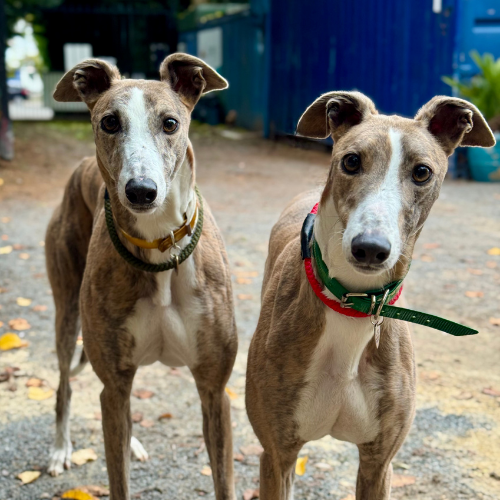 They are both easy-going and undemanding dogs once they feel settled. They enjoy their routine, are clean in their space, and settle well together. While neither is high-energy, they will benefit from regular walks, gentle stimulation, and plenty of time to relax in a home environment.